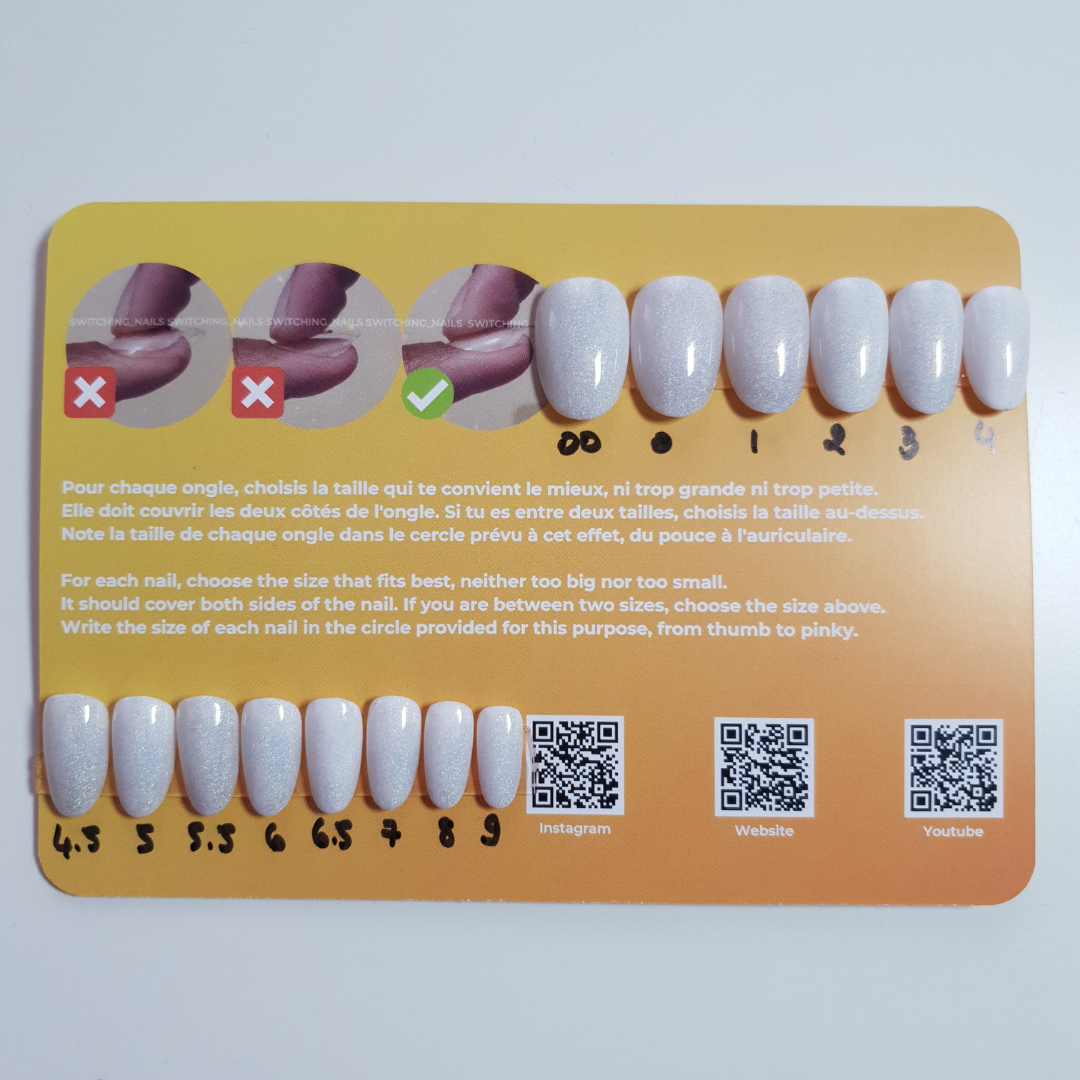 You’ll receive a set of 28 nails (14 sizes × 2) in a solid color, designed to help you find your perfect fit and wear them right away.