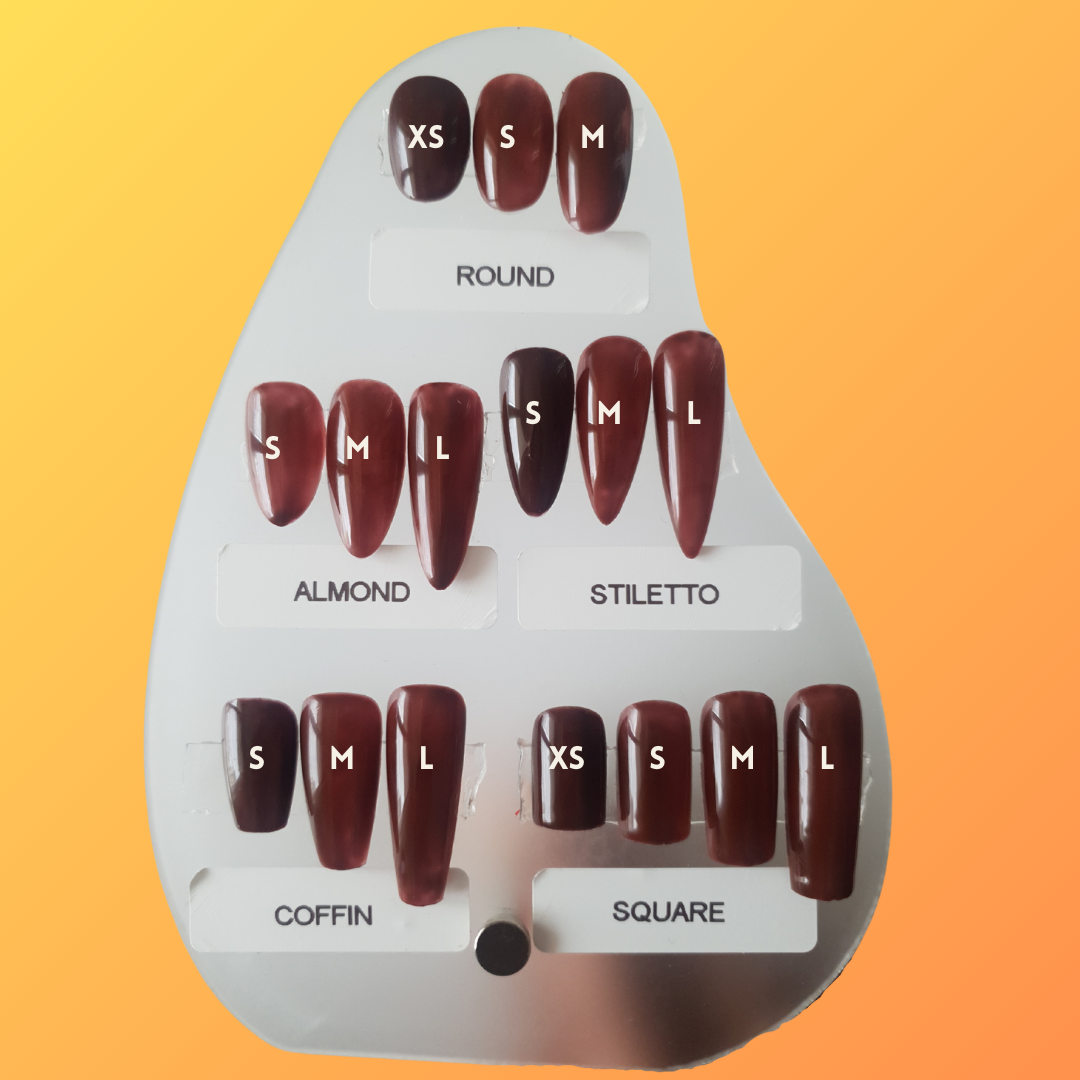 - A set of 10 press-on nails to your size with a solid color and the top-coat of your choice